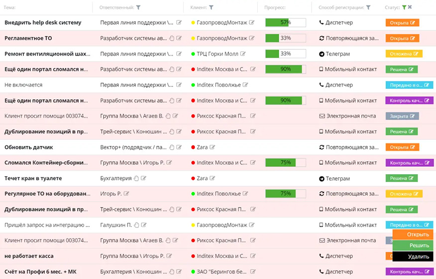 Для управления заявками, выездными работами и техподдержкой в сервисных компаниях